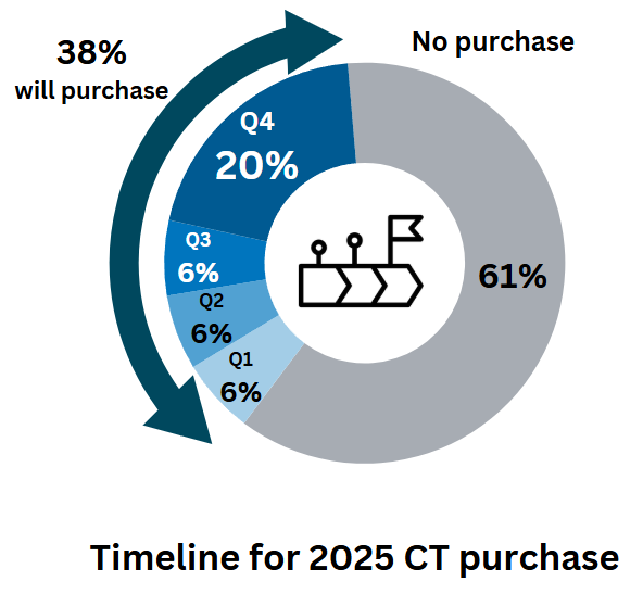 38% of the imagePRO panel members expect to purchase a CT in 2025. Most of these planned acquisitions will occur in Q4 of 2025, with 20% of imagePRO members completing their product selection during this quarter. An additional 18% of imagePRO members will finalize their CT deals evenly throughout Q1, Q2, and Q3, with each quarter accounting for 6%.