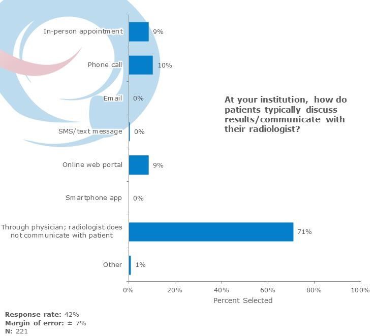 - 71% of respondents stated that radiology results are communicated through a physician, and not discussed with the radiologist.