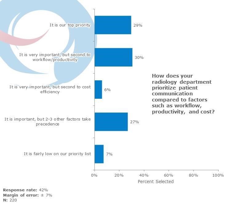 - In the radiology department, 29% of respondents stated that patient communication is a top priority, but 63% stated that workflow/productivity and cost efficiency can take precedence.