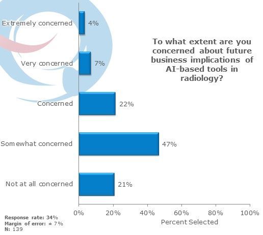 Only 1/5 reported not being at all concerned by Ai in radiology.